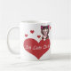 This adorable little kitty cat peeks from behind a big red heart with Ich Liebe Dich written on it. Get this I love you mug for your German speaking Valentine anytime of the year! Exclusive to our shop.