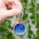 Ichthus Pattern on Blue Background Keychain