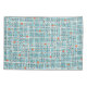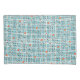 Stylish on trend pattern inspired by retro modern mid century designs with atomic starburst shapes on a white basket weave in tones of orange, grey, turquoise, black and white
