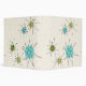 This Iconic Atomic Starbursts Binder pattern features iconic atomic starbursts. That’s right! The old school, cream colored background with gold speckles is the perfect backdrop for the vibrant turquoise, soothing celery, and kitschy pear green colored circles. The spots of color are sporadically placed in various sizes with overlaying black V shaped lines to form the mod sputnik starbursts. Styled after a 1950’s dish pattern, this retro inspired design has everything you need to be truly mid century modern.