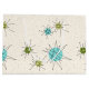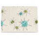 This Iconic Atomic Starbursts Gift Bag (large print) pattern features iconic atomic starbursts. That’s right! The old school, cream colored background with gold speckles is the perfect backdrop for the vibrant turquoise, soothing celery, and kitschy pear green colored circles. The spots of color are sporadically placed in various sizes with overlaying black V shaped lines to form the mod sputnik starbursts. Styled after a 1950’s dish pattern, this retro inspired design has everything you need to be truly mid century modern.