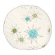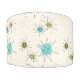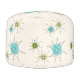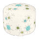 This Iconic Atomic Starbursts Round Pouf pattern features iconic atomic starbursts. That’s right! The old school, cream colored background with gold speckles is the perfect backdrop for the vibrant turquoise, soothing celery, and kitschy pear green colored circles. The spots of color are sporadically placed in various sizes with overlaying black V shaped lines to form the mod sputnik starbursts. Styled after a 1950’s dish pattern, this retro inspired design has everything you need to be truly mid century modern.