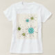 This Iconic Atomic Starbursts T-Shirt pattern features iconic atomic starbursts. That’s right! The old school, cream colored background with gold speckles is the perfect backdrop for the vibrant turquoise, soothing celery, and kitschy pear green colored circles. The spots of color are sporadically placed in various sizes with overlaying black V shaped lines to form the mod sputnik starbursts. Styled after a 1950’s dish pattern, this retro inspired design has everything you need to be truly mid century modern.