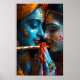 A breathtaking depiction of Radha and Krishna in a serene, pastoral setting, surrounded by vibrant flora and fauna. Krishna, playing his enchanting flute, radiates calmness, while Radha, with her graceful expression, embodies devotion and love