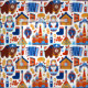 Little dolls, accordions, buildings, bears make this fabric stand out.