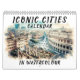Each month features a well know city captured in watercolour. Throughout the year you'll see iconic destinations like Paris, New York, Athens, Edinburgh and more!