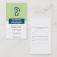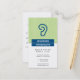 A stylized deep blue ear sits against a subtle pinstriped light green background. Perfect for otolaryngologists, audiologist or just about any business dealing with the ear and/or hearing. Leave the back as is with appointment information or customize it to your liking. Available in alternate colors with matching products.
