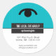 A stylized black eye sits against a subtle pinstriped turquoise background on this sticker. Perfect for opthamologists, optometrists, optician or just about any business dealing with the eyes. Available in alternate colors with matching products.