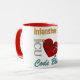 I was thrilled this came out so well. It is a very attractive mug with the colored handle and interior. Being able to personalize it was easy! It was designed for an end of the year thank you gift to the special recipient. perfect. Text lines up perfectly parallel to the top edge of the mug.