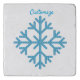 Crochet-style blue knit snowflake design to customize or personalize by changing to your name on any background color