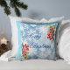 Icy Blue Winter Snowflakes & Holly Merry Christmas Throw Pillow