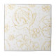 Ceramic tile with Abstract gold foil contours flowers. Vintage floral pattern. Silhouettes of flowers on white background. Minimal style floral background ceramic tile. Icy Tenderness Collection.