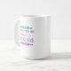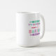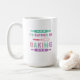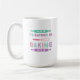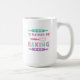 A cute coffee mug for the baker in your life with "I'd rather be baking" in a fun retro font with illustrations of rolling pins and a whisk in pink, purple and teal.