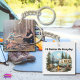 Carry a reminder of your favorite escape wherever you go with this charming camping keychain! The front features a cozy vintage camper parked by a lakeside campfire, surrounded by pine trees and majestic mountains. The quote "I'd Rather Be Camping" can be changed to a phrase that expresses your love for the great outdoors. A photo of a camping memory can be placed on the back. This design captures the essence of the perfect outdoor getaway. The vibrant, detailed illustration is perfect for camping enthusiasts and nature lovers. This keychain makes a great accessory for your keys, backpack, or RV!