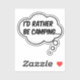 I'd rather be camping. Cartoon speech bubble in black and white with funny quote.