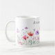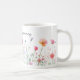 Beautiful watercolor flowers border this mug. For seasonal home decor, mugs are an easy change from cozy winter to a colorful spring aesthetic. Text can be changed. AI assisted graphic purchased with commercial license. Artwork: MokoDE