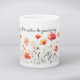 Pretty watercolor flowers border this mug. For seasonal home decor, mugs are an easy change from cozy winter to a colorful spring aesthetic. Text can be changed. AI assisted graphic purchased with commercial license. Artwork: MokoDE