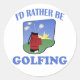 Golfing T Shirts and gifts for men and women who love to golf. Design has a golf cart scene and the words I'd rather be golfing. Available on travel mugs, coffee mugs, hoodies, buttons, magnets and much more.