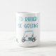 Golf themed white ceramic mug, with watercolor graphics of a golf cart, golf bag and a golf flag. I'd rather be golfing in aqua blue text can be personalized to read what you want. Great gift idea for any golfing fan.