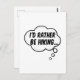 I'd rather be hiking. Cartoon speech bubble in black and white with funny quote.