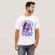 Vibrant, colorful design featuring a skeleton holding a cat. The colorful text reads: "I'd rather be home with my cat". This design is available on a wide variety of products.