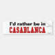 I'd Rather Be In Casablanca! Are you from Casablanca, Morocco? Do you have a friend or family member who loves Casablanca, Morocco? If so, this "I'd Rather Be In..." bumper sticker is what you're looking for! The design features "I'd rather be in" in small black lettering at the top and "Casablanca" in big red lettering at the bottom.