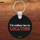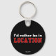 Take a look at this "I'd Rather Be In..." key chain! Do you miss your hometown? Do you have a friend or family member who would rather be in their hometown instead of where they are now? If so, this "I'd Rather Be In..." key chain is exactly the gift that you're looking for! The design features "I'd rather be in" in small lettering at the top and the location in big red lettering at the bottom.