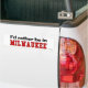 I'd Rather Be In Milwaukee! Are you from Milwaukee, Wisconsin? Do you have a friend or family member who loves Milwaukee, Wisconsin? If so, this "I'd Rather Be In..." bumper sticker is what you're looking for! The design features "I'd rather be in" in small black lettering at the top and "Milwaukee" in big red lettering at the bottom.