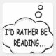 I'd rather be reading. Cartoon speech bubble in black and white with funny quote.