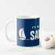 I'd rather be sailing mug with sailboat design. Cute sailing / boating gift idea for retiring men and women. Customize background colors ie navy blue. Sailboat / sailing ship logo. Blue and white colors. Nautical maritime design. Retirement humor for sailors. Also nice as Birthday gift for skipper or fisher.