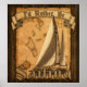I'd Rather Be Sailing poster for sailors and sailing enthusiast. Old style nautical map of the Bahamas with compass rose, sailboat, ribbon banner, and old wood background.