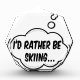 I'd rather be skiing. Cartoon speech bubble in black and white with funny quote. Available on mugs, stickers, buttons, t-shirts for men, women and kids.