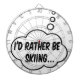 I'd rather be skiing. Cartoon speech bubble in black and white with funny quote. Available on mugs, stickers, buttons, t-shirts for men, women and kids.