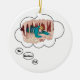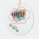 Lightweight, smooth, pure white ornament with nice sheen. Perfect size to be seen from across the room ... and to attract closer inspection! Price was great for ordering enough for the whole family! Clear, bold black design just as requested. Matches the order exactly. Just so nice!