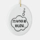 Lightweight, smooth, pure white ornament with nice sheen. Perfect size to be seen from across the room ... and to attract closer inspection! Price was great for ordering enough for the whole family! Clear, bold black design just as requested. Matches the order exactly. Just so nice!