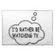 I'd rather be watching tv. Cartoon speech bubble in black and white with funny quote.