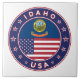 Badge of Idaho with flag of Idaho and flag of USA colors, rounded shape.