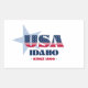 Idaho sticker. This design captures the spirit of Idaho's statehood in 1890 with bold text and the vibrant colors of the American flag.