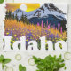 Idaho shape with mountain and wildflowers kitchen towel