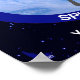 A humorous depiction of a potato as a satellite dubbed "Spudnik-1," with forks serving as antenna, in orbit around the earth. Features the Spudnik-1 mission patch superimposed on a starry background. Add your own text.