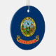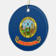 The flag of the state of Idaho consists of the state seal on a field of blue. The words “State of Idaho” appear in gold letters on a red and gold band below the seal. According to the official description of the flag, there should also be a fringe of gold around the edges, but a long time ago the versions of the flag were not shown until they remodeled the flag after War. The seal, in the center of the flag, depicts a miner and a woman representing equality, liberty and justice. The symbols on the seal represent some of Idaho’s natural resources: mines, forests, farmland, and wildlife.