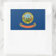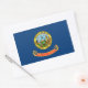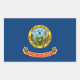The flag of the state of Idaho consists of the state seal on a field of blue. The words “State of Idaho” appear in gold letters on a red and gold band below the seal. According to the official description of the flag, there should also be a fringe of gold around the edges, but a long time ago the versions of the flag were not shown until they remodeled the flag after War. The seal, in the center of the flag, depicts a miner and a woman representing equality, liberty and justice. The symbols on the seal represent some of Idaho’s natural resources: mines, forests, farmland, and wildlife.