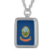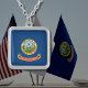 The flag of the state of Idaho consists of the state seal on a field of blue. The words “State of Idaho” appear in gold letters on a red and gold band below the seal. According to the official description of the flag, there should also be a fringe of gold around the edges, but a long time ago the versions of the flag were not shown until they remodeled the flag after War. The seal, in the center of the flag, depicts a miner and a woman representing equality, liberty and justice. The symbols on the seal represent some of Idaho’s natural resources: mines, forests, farmland, and wildlife.