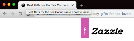 You can see that each result contains a combination of “tea lovers” and “gift ideas” within the title tag. The title tag can also be found on the page when you click through from the SERPs: