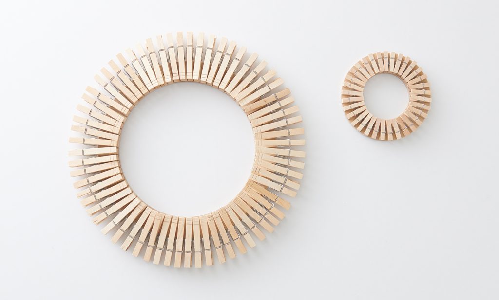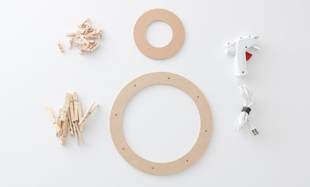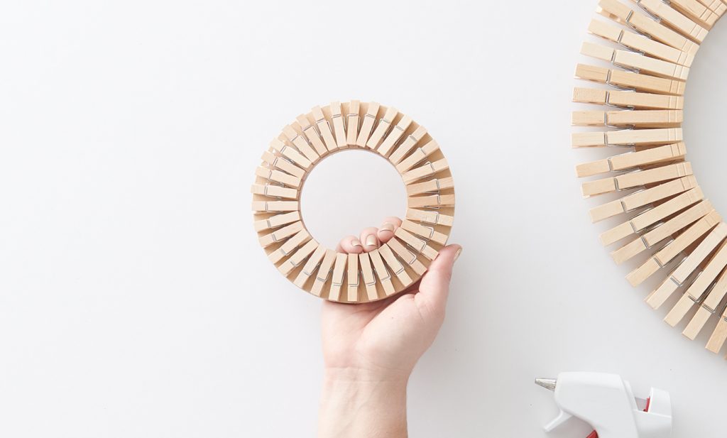 2. Continue the first step until the wreath is completely covered with clothespins.