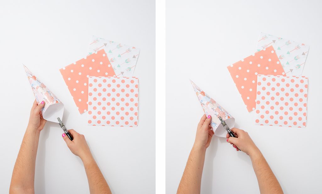 You can either leave the cone open like this, filling it with food and favors, or follow the next step to make it a closed pouch.