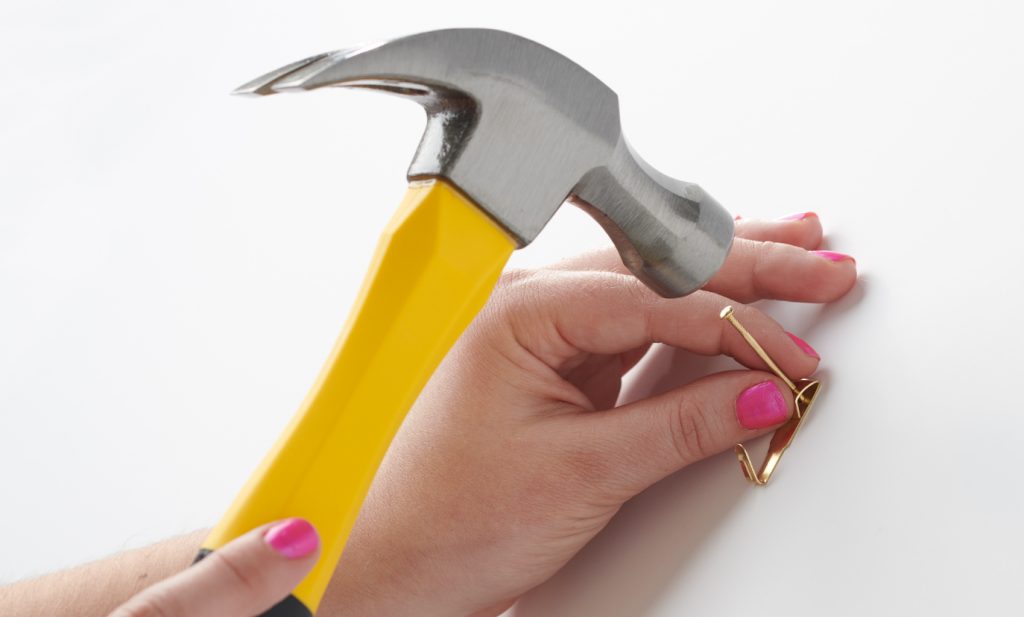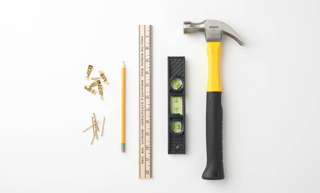 4. Hang! Use the leveler to make sure all of your pieces are straight. Repeat the previous steps until you’ve completed your gallery.