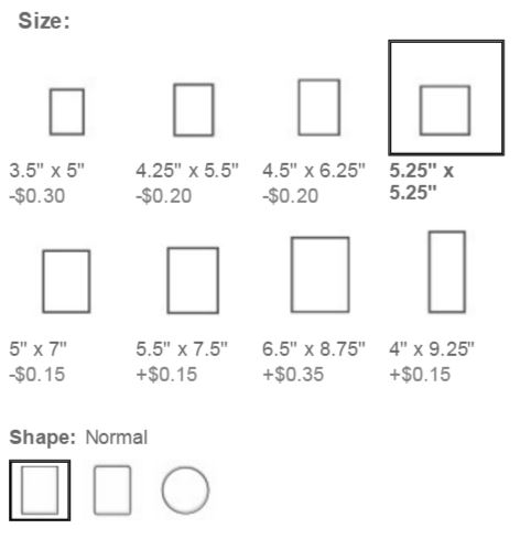 Start with an invitation and select the “square” shape and “Ultra-Thick” paper type:
