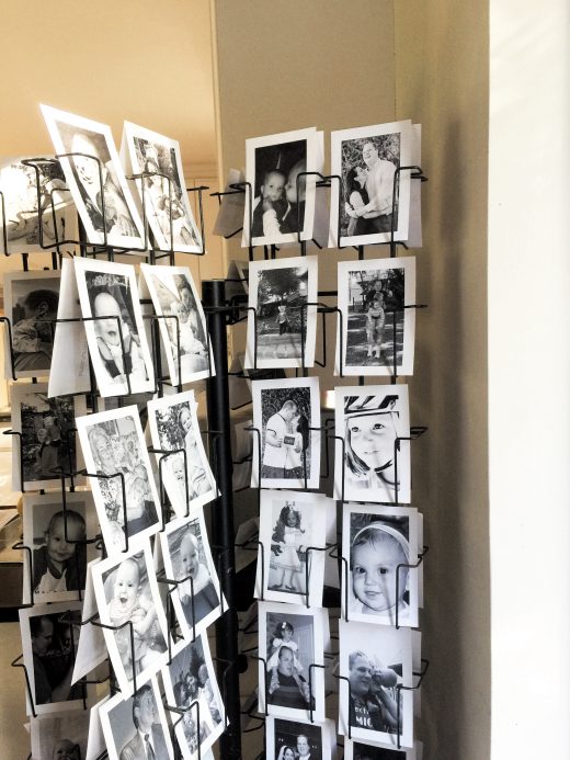 Re-purposing a postcard rack as a 4×6 photo holder is the perfect way to show off 100+ prints in a space-saving, eye-catching display! With a small footprint, this rack can fit into any corner of the house and multiple prints can fit into each holder making it a cinch to update the photos.