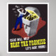 This vintage World War II poster features a man inspecting the inner workings of a statue's brain. It reads, "Ideas Will Help Beat The Promise Let's Have Yours!" Celebrate WW2 History with this digitally restored vintage war poster from The War Is Hell Store.